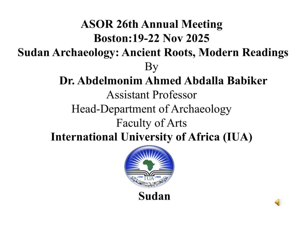 Presentation Recording (19 Nov 2025) AmSARC sponsored session, Africa in the Ancient World, Sudan Archaeology: Ancient Roots, Modern Readings, by Dr. Abdelmonim Ahmed Abdalla Babiker. Please click the image to access the video.